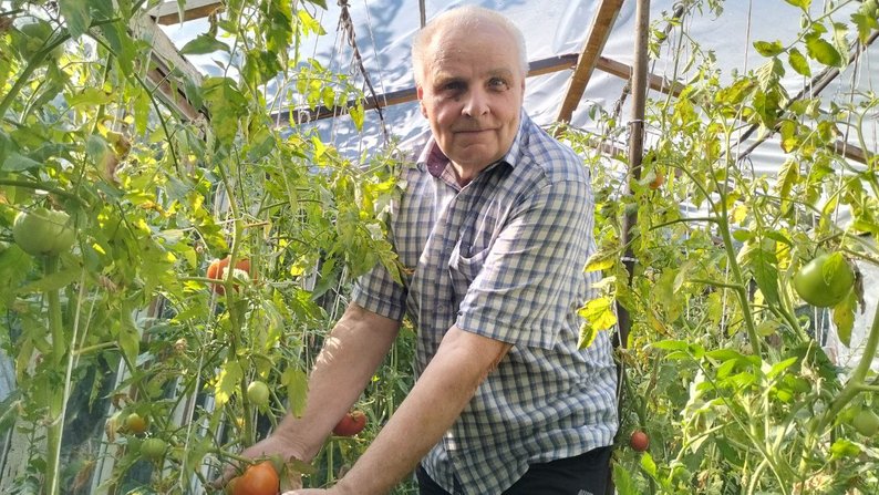 “Помідори у мене високорослі. В одному пеньочку виходить до відра помідорів, до 50 помідорів. Є американські ребристі – вони до кілограма”, — зазначив він.