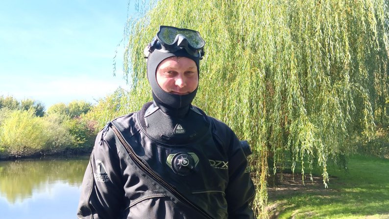 Василь Марценюк водолазом працює з березня 2022 року. Каже: у цю професію потрапив після занурення у дайвінгу. До цього працював різноробом.