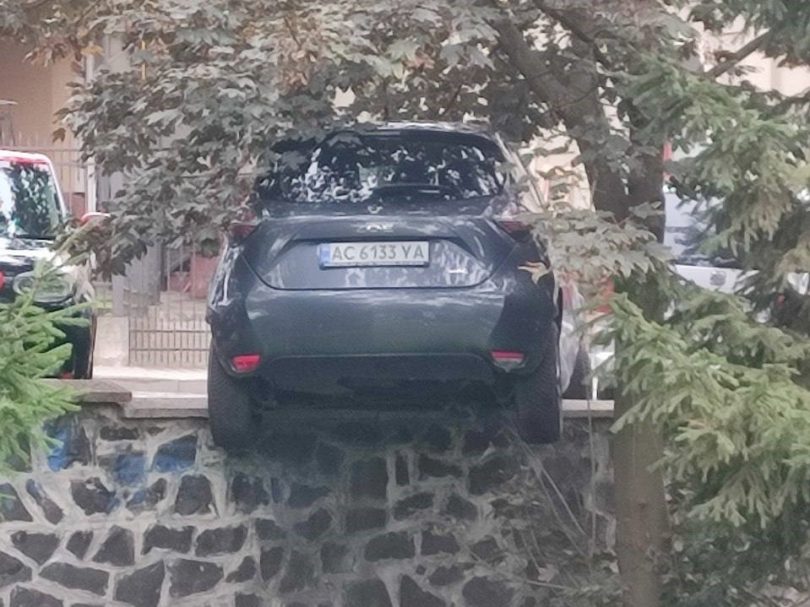 У Луцьку на парковці, що по вулиці Братковського трапилася дорожньо-транспортна пригода – автівка зависла у повітрі.