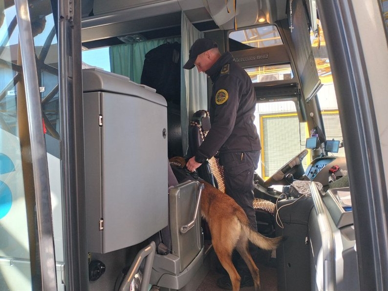 Зазвичай в автобусі є орієнтовно 30 пасажирів. Службовий пес завдяки нюху може швидко перевірити кожного. Якщо собака відреагувала на чийсь багаж — сумку чи валізу забирають на поглиблений огляд.