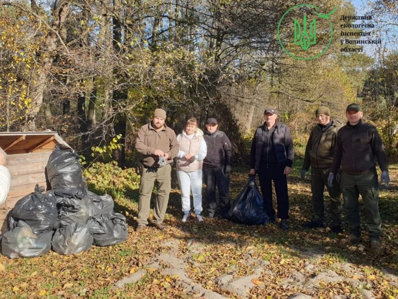 Також, наприкінці жовтня, в селі Хорів Володимирського району, державний інспектор з ОНПС спільно з небайдужими жителями цього села, очистили прибережну смугу ставка від твердих побутових відходів.