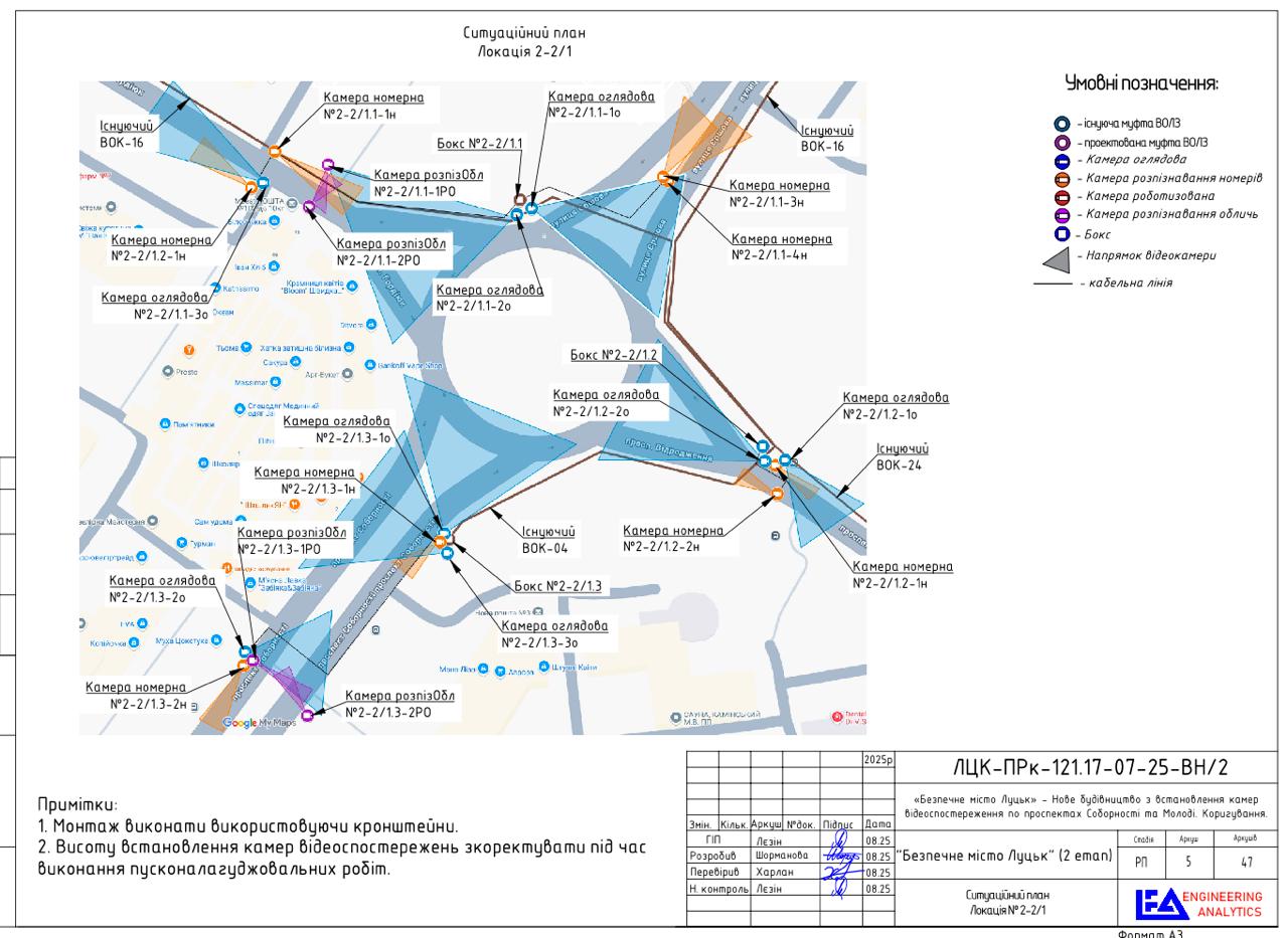 Загалом на зазначених локаціях встановлять дві записувальні відеокамери, 67 оглядових і 14 номерних.