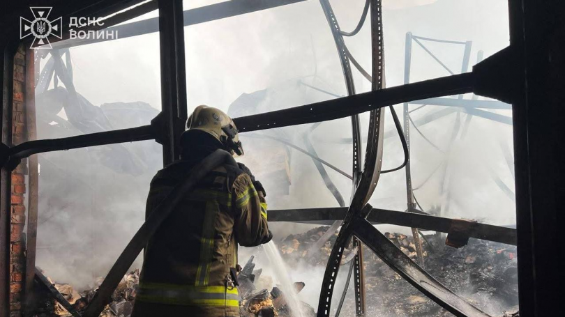 Нагадаємо, вранці 6 грудня Луцька громада вчергове пережила ворожу повітряну атаку з застосуванням БПЛА. Внаслідок атаки ворога виникла пожежа на складських приміщеннях з продуктами харчування. Знищено майно, оздоблення та продукція на площі орієнтовно 3800 м2. Ліквідація пожежі наразі триває.