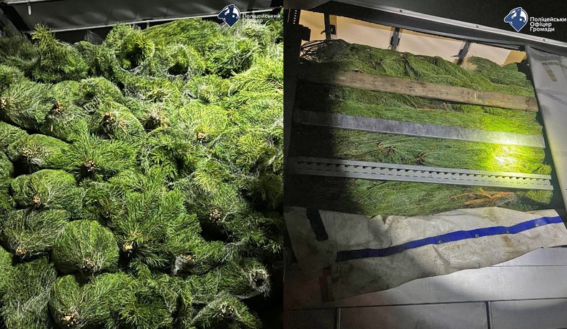 Хвойні дерева були запаковані в мішки-сітки. Під час перевірки поліцейські встановили, що законність походження ялинок не підтверджена документами, що надав водій.