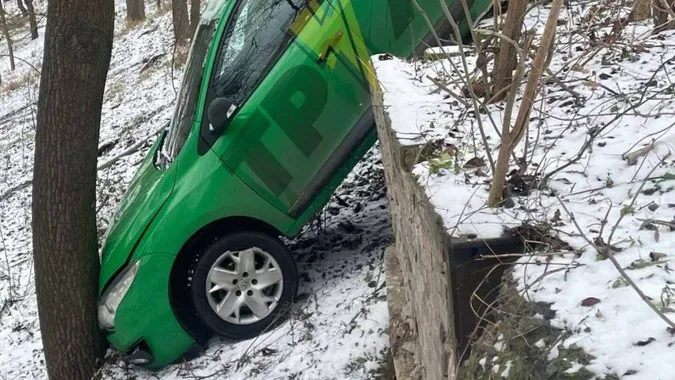 За словами очевидців, машина самовільно скотилася зі схилу та вперлася передньою частиною прямо у дерево. Ситуація могла мати значно гірші наслідки, адже за кілька метрів знаходиться яр.