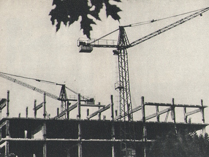 “Старий цум тільки будується. Фото з видання 1966 року. Над проектом попрацювала група архітекторів на чолі з Євгеном Ходаковським. Вийшов стильний модерністський проект. Ось ці перекриття на фото незабаром отримають суцільні вікна на всю висоти і на всю довжину фасадів з переходом на бічні фасади, що створить ефект стрічковості”, – йдеться у дописі.