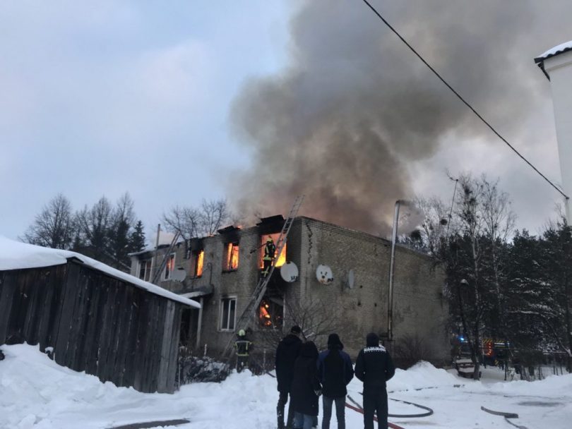 Загорання почалося близько 6-ої ранку з однієї сторони будівлі та згодом почало перекидатися на всю її частину. Для ліквідації загорання прибуло кілька екіпажів пожежних автомобілів, які долучились до гасіння пожежі. Робота рятувальників ускладнюється через морозну погоду.