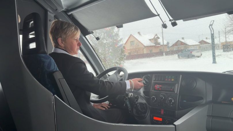 Марія Турсунова з Устилуга працює водійкою автобуса п’ятий місяць, возить людей за маршрутом “Володимир-Устилуг”. За кермом жінка майже 30 років, до цього була далекобійницею. Коли вирішила відкрити категорію “Д”, дізналася, що потрібні водії на рейсові маршрути. Подзвонила — і її взяли, відтоді щодня за кермом.