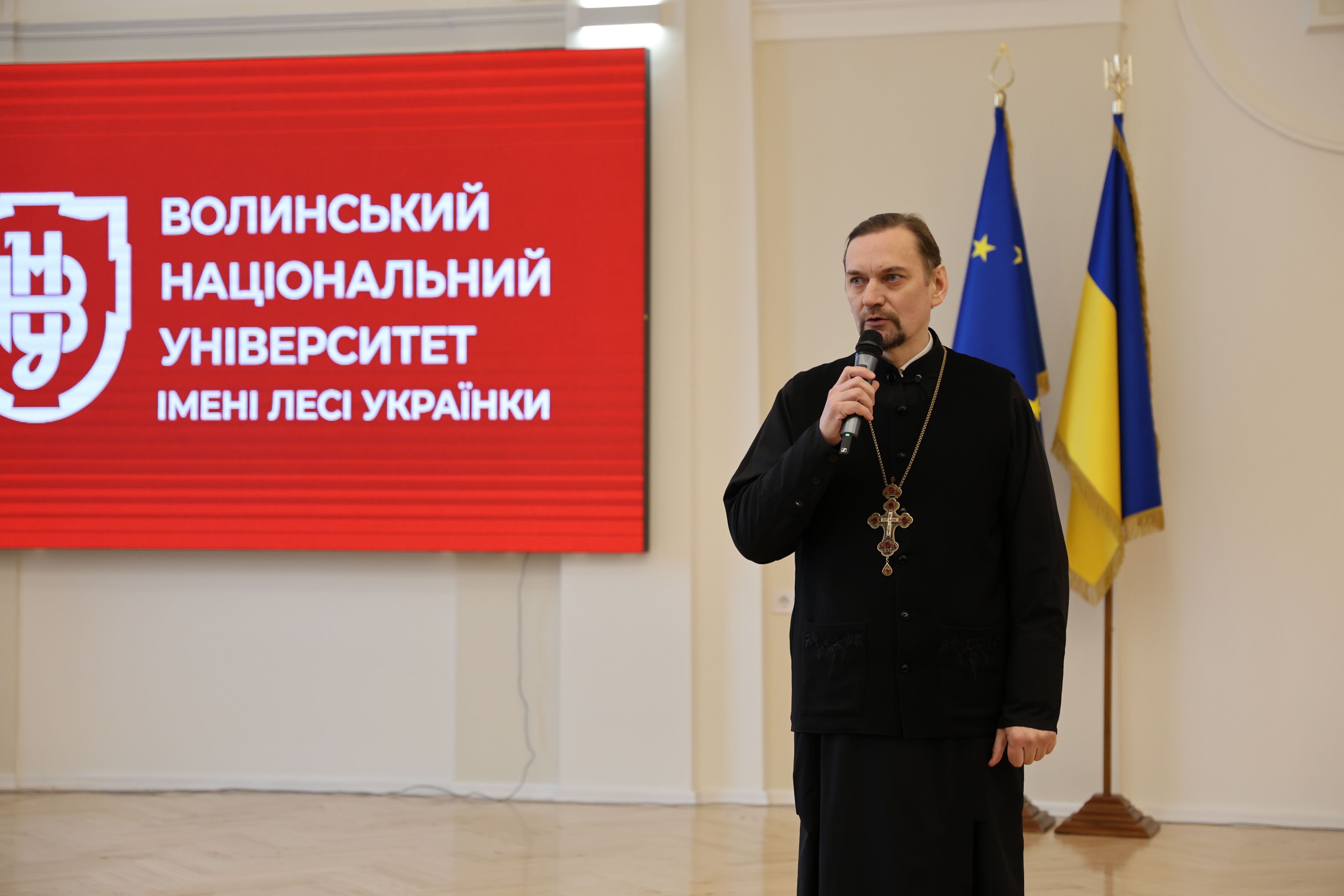 Привітав випускників і настоятель університетського храму Віктор Пушко. У своєму зверненні він підкреслив, що справжня освіченість полягає не лише в обсязі знань, а й у здатності осмислено застосовувати їх у житті, побажавши магістрам Божого благословення, успішної реалізації задумів та розкриття власних талантів.