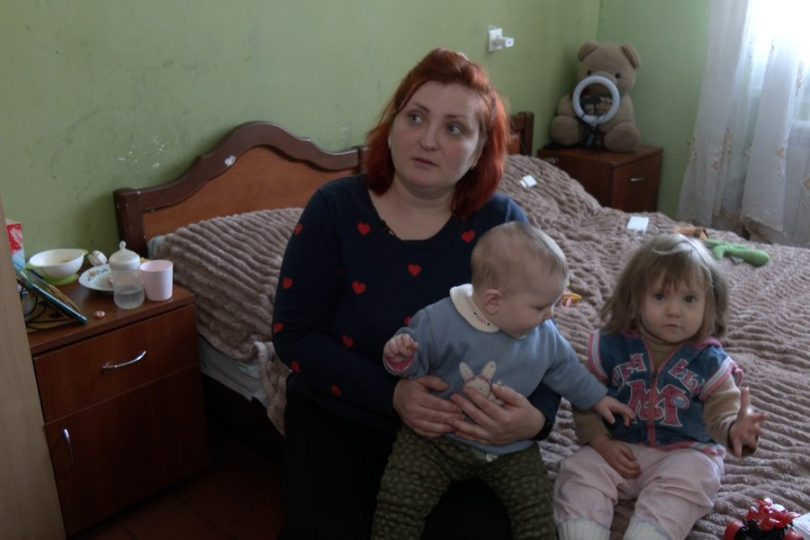 “Летіло, вибухало, ми в кут забігли, нам скло по ногам і чоловік казав – Настя, давай виїжджаємо. Ми в двір боялись випустить дітей, там гради летять. Пил і газ пішов бо там в труби газові попали. Дирки в криші а що ж толку сидіть з дітьми в тій хаті. Холод. Води немає, батерею зірвало“, — розповідає жінка.