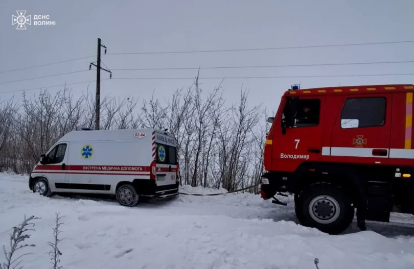 5-го лютого вранці поблизу села Хотячів Устилузької громади рятувальники відбуксирували зі снігового замету карету швидкої, яка прямувала за викликом.