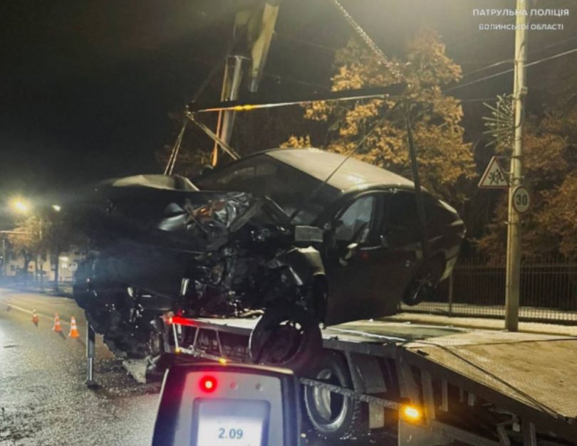Назарій Ш. за кермом авто Toyota не обрав безпечної швидкості, відволікався від кермування і в’їхав у бетонну опору біля стадіону. Внаслідок зіткнення в автівки вщент розтрощило капот та вирвало передні колеса.