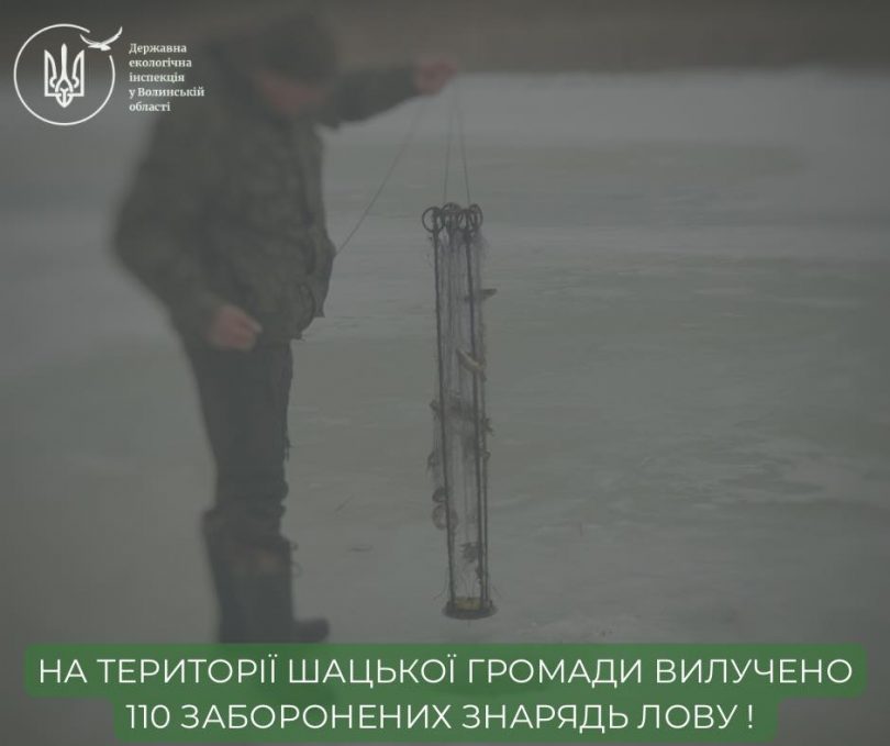 Під час проведення заходів з виявлення та запобігання адміністративних правопорушень,  державні інспектори з охорони навколишнього природного середовища спільно з громадським інспектором з охорони довкілля, на озерах Кримне та Острів’янське, що розташовані на території Шацької селищної ради – виявили та вилучили безгосподарські заборонені знаряддя вилову водних біоресурсів, а саме: 110 жерлиць та один екран.