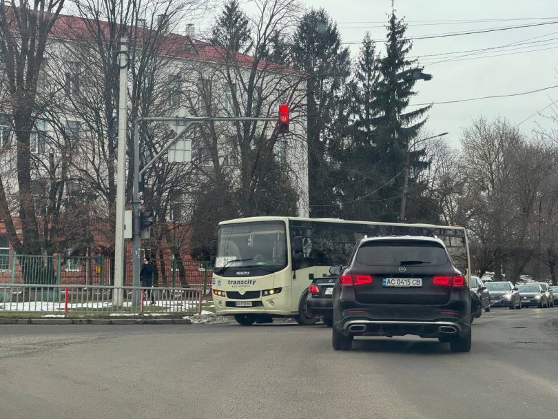 У Луцьку маршрутка громадського транспорту поїхала на червоний колір світлофору.
