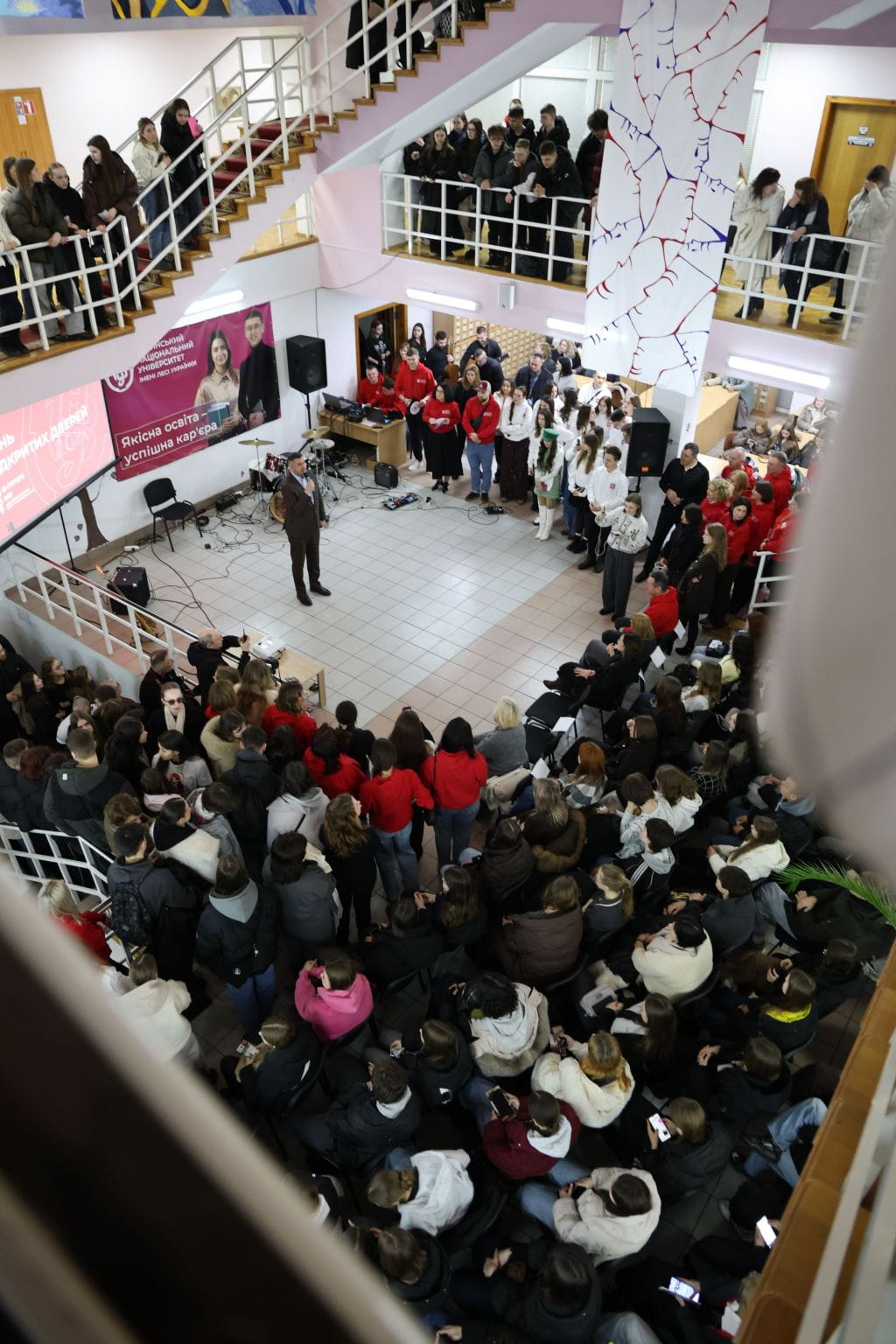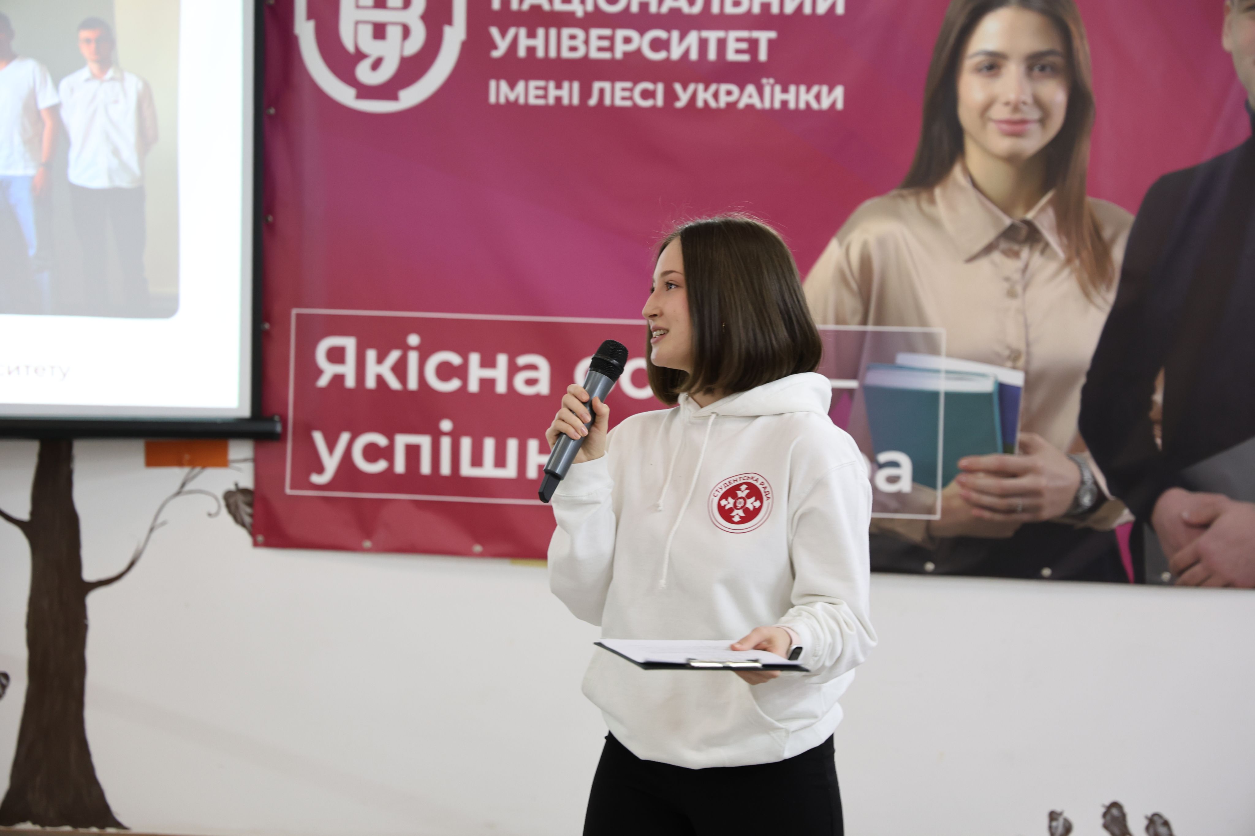 Про студентське життя говорила й голова студентського самоврядування Анна Руда : благодійні акції, донорські ініціативи, тематичні вечірки, квізи, спортивні турніри. «Університет – це значно більше, ніж просто навчання. Це місце, де формуються мрії та починається доросле життя», – зазначила вона.