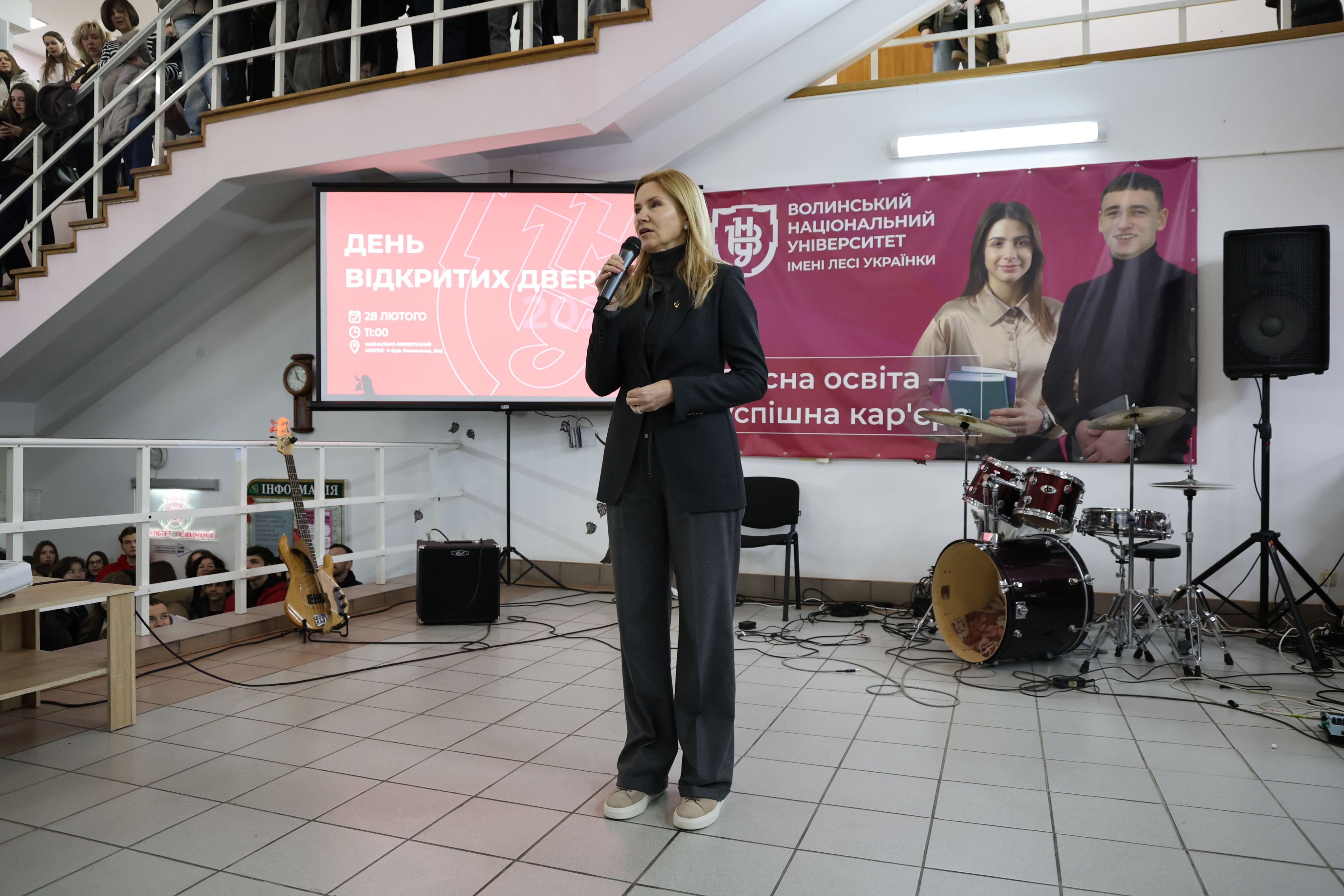 «Мені надзвичайно приємно бачити сьогодні так багато допитливих очей тих, хто планує вступати до університету. І мушу сказати: ваш ректор – мабуть, найкращий промоутер свого ж закладу, адже щиро закликає вибрати саме його. Але головне – інше. Волинський національний університет за всіма критеріями входить до двадцятки найкращих в Україні. І сьогодні ви маєте не просто познайомитися з умовами вступу, а відчути, де знайдете своїх друзів, свою спільноту, свій перший серйозний досвід. Бо якісна освіта – це насамперед можливість для майбутнього», – сказала Олена Кондратюк.