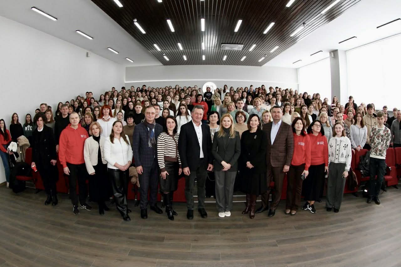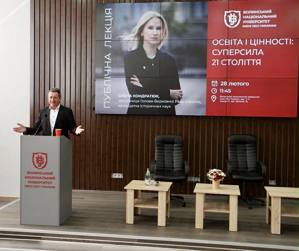 Щоб чогось досягти – треба спершу вирости на системі цінностей: саме ця теза стала лейтмотивом лекції Ради Олени Кондратюк «Освіта та цінності: суперсила ХХІ століття». Говорили про те, як демократія працює всупереч воєнному часу, чому важливо захищати правду, суверенітет і міжнародне право. І що саме молодь, студенти, майбутні керівники та фахівці стануть гарантом цих принципів, коли війна завершиться, і саме вони будуть на авансцені життя країни.