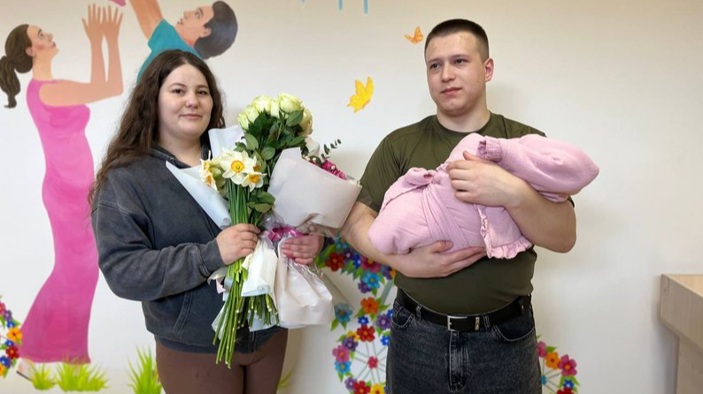 Зі слів Марії, імені для донечки ще не обрали. Побратим подружжя військовослужбовців — Дмитро приїхав підтримати батьків та передав привітання з народженням донечки від усієї бригади.
